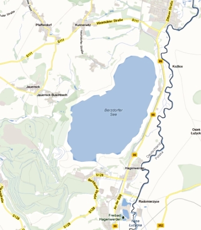 an der südlichen Stadtgrenze von Görlitz im bis Anfang 2013 gefluteten Restloch des Braunkohletagebaus Berzdorf.