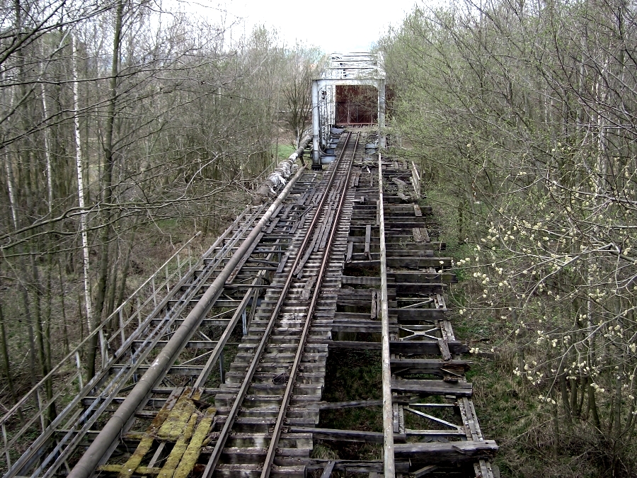 zwei seltsame Brücken über die Neiße, über sie läuft der Austausch von Kohle und Asche. Sie gehören zum