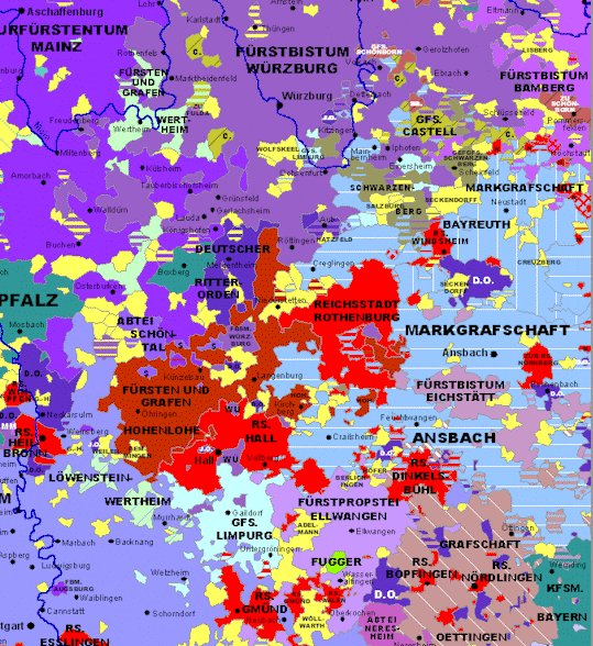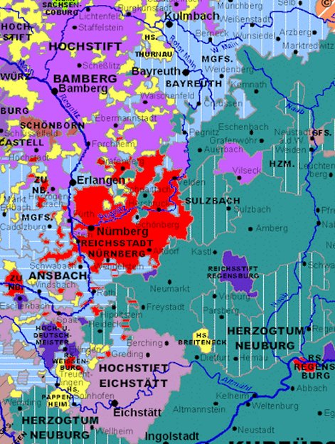 Dazu mittelgroße Fürstentümer wie Ansbach und Bayreuth oder Kleinterritorien. Teilweise hat schon der Nachbarort