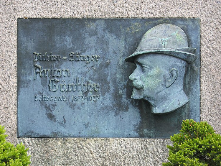 ![]() Sein Grab samt der 1937 angebrachten Grabplatte ist - im Gegensatz zu den Gräbern vieler Deutscher - erhalten. ![]() "... jene Gestalten, die ich in meinen Liedern besungen habe, von Berg und Tal, aus Wald und Feld, aus unseren armen Hütten, die ganze Heimat mit ihren göttlichen Schöpfungen, alles das wird Euch aus meinen Liedern entgegenklingen und dankbar zujubeln, auch wenn ich nicht mehr bin....." Überall im Ergebirge und Umgebung finden sich Gedenksteine, Straßen, Plätze und Wege mit dem Namen des bekanntesten Heimatdichters der Region. Mit den auch heute noch oft gesungenen Liedern hat er sich in die Herzen der Erzgebirger gesungen. Und sie laden seine Songs unermüdlich hoch in youtube ... ![]() Von Oberwiesenthal nach Boží Dar führt der Anton-Günther-Weg durch den Zechengrund, schmal und steil und im Winter deshalb nicht ganz ungefährlich. Aber ein wunderbarer Wanderweg im sächsisch-böhmischen Grenzgebiet auf den Spuren von Anton Günther. ![]() |