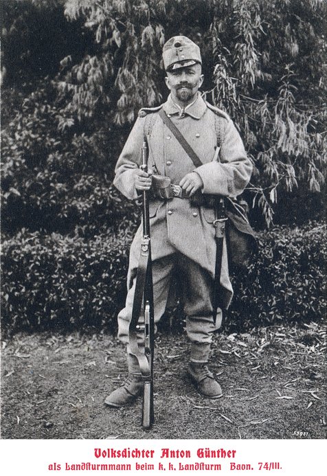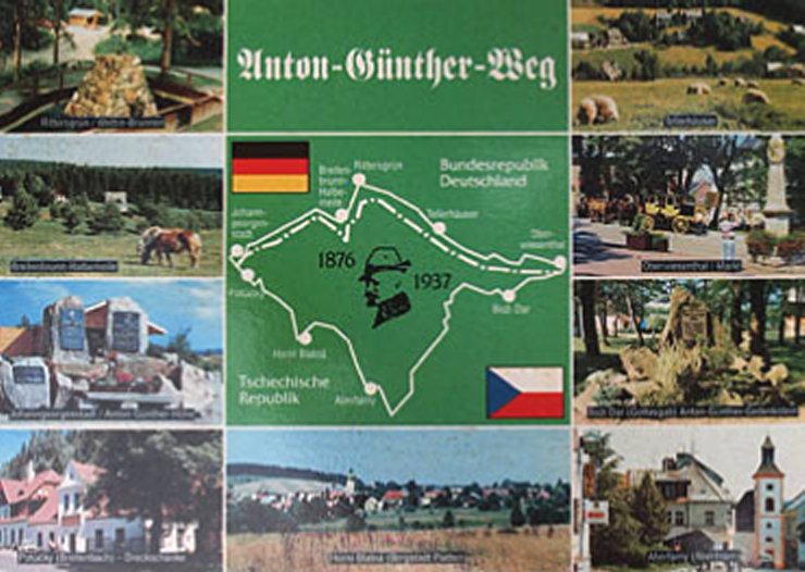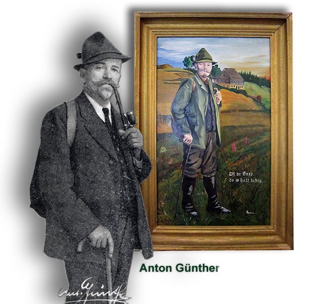 ![]() 1901 Rückkehr nach Gottesgab, er muss sich um Familie und Geschwister kümmern. Die kleine Landwirtschaft reicht nicht zum Unterhalt, Günther tritt als Sänger und Musiker auf und verkauft seine Liedpostkarten im Selbstverlag. 1908 heiratet er die Zimmermannstochter Marie Zettl. Sie bekommen drei Kinder. ![]()