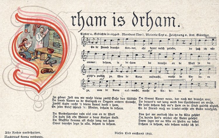1895 schreibt er eines seiner bekanntesten Lieder: „Drham is’ drham“ (Daheim ist daheim).