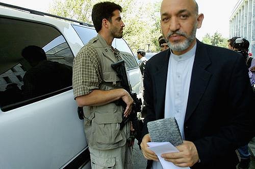 Karzai, 1957 in Karz nahe Kandahar geboren, Paschtune, studiert bis 1983 in Indien Politik. Gegen die sowjetische Intervention unterstützt er als Unternehmer die Mudschaheddin mit einem Teil seines Vermögens. Ende der 1980er Jahre kehrt Karzai nach Afghanistan zurück, um anti-sowjetische Kräfte im Land zu unterstützen. Nach dem Abzug der Sowjets ist er 1992 bis 1994 Vize-Außenminister.