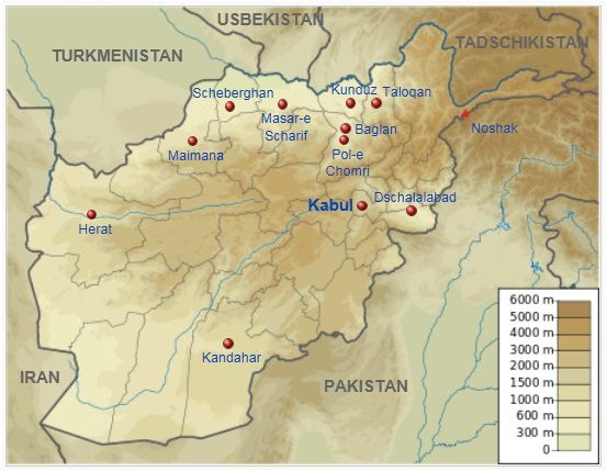 Das Land an der Schnittstelle von Süd- und Zentralasien, fast doppelt so groß wie die Bundesrepublik, hat 30 Mill. Einwohner (6 Mill. auf der Flucht, 3 Mill. im Exil), und besteht zu drei Vierteln aus schwer zugänglichen Gebirgsregionen - nur weniger als 10% seiner Fläche liegen unterhalb von 600 m Meereshöhe, das Hindukuschgebirge ist bis 7500 m hoch. Erst seit 1964 besteht zwischen dem Becken von Kabul und dem nördlichen Landesteil eine winterfeste Straßenverbindung (mit dem höchsten Straßentunnel der Welt) über den Gebirgskamm nach Mazār-i Scharif.