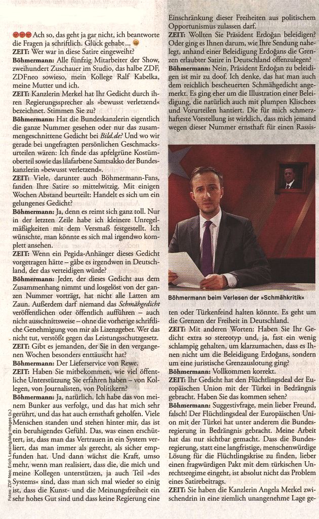 Am 31. März 2016 trägt der Beschuldigte in der ZDFneo-Sendung 'Neo Magazin Royale'