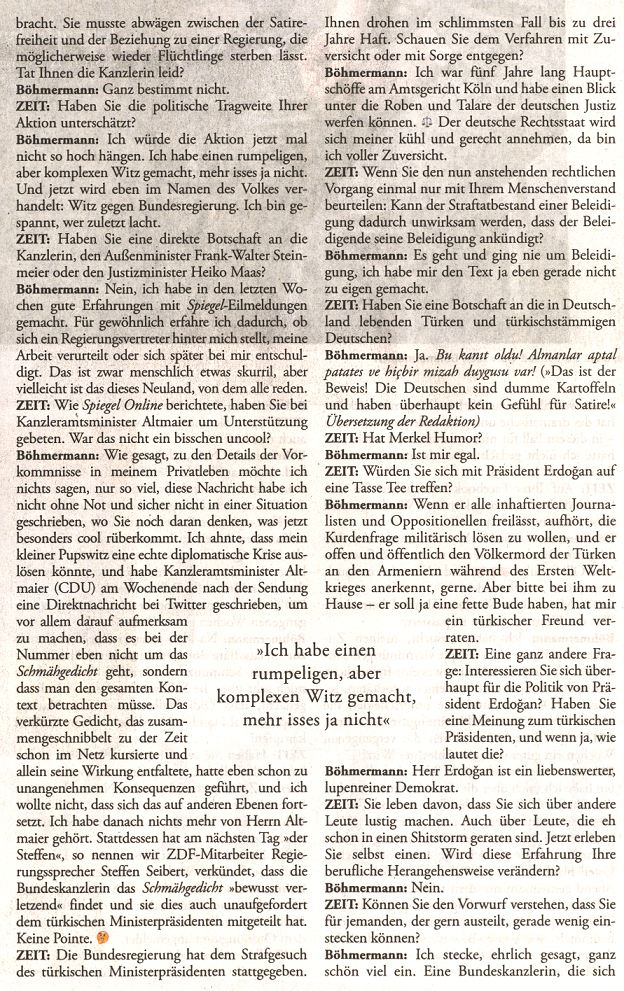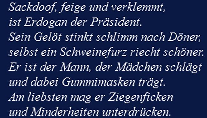 und seines Sidekicks, man wolle damit erläutern, wie eine in Deutschland verbotene Schmähkritik aussehe.