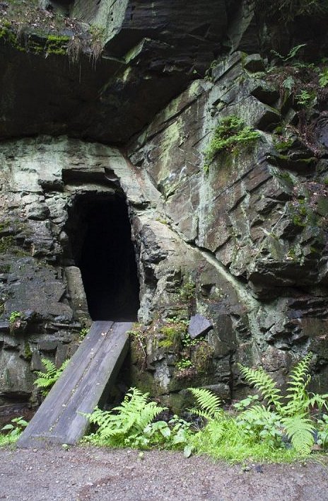 so an einer erst 1956 stillgelegten Wolframitgrube und kleinen Stollnmundlöchern vorbei und