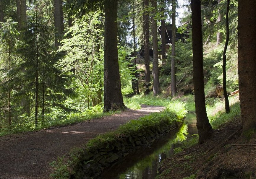 Der Floßgraben führt noch immer an verschiedenen bergmännischen Anlagen,