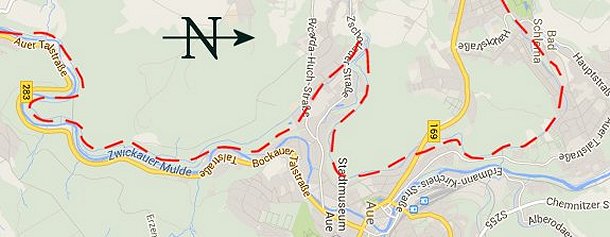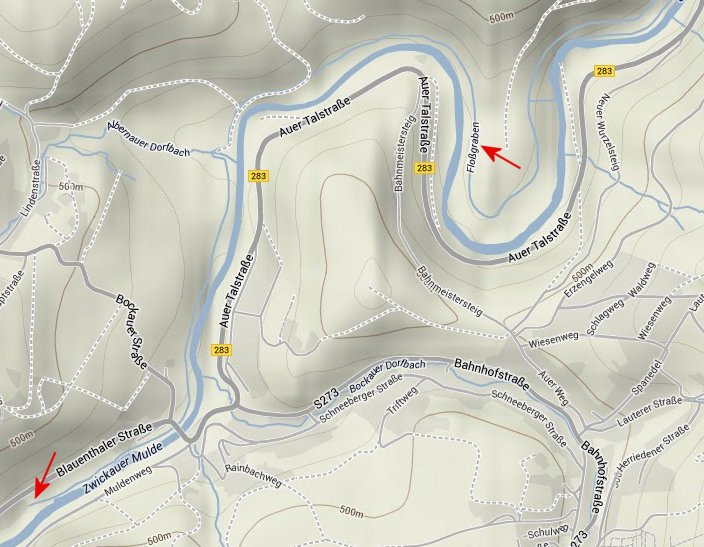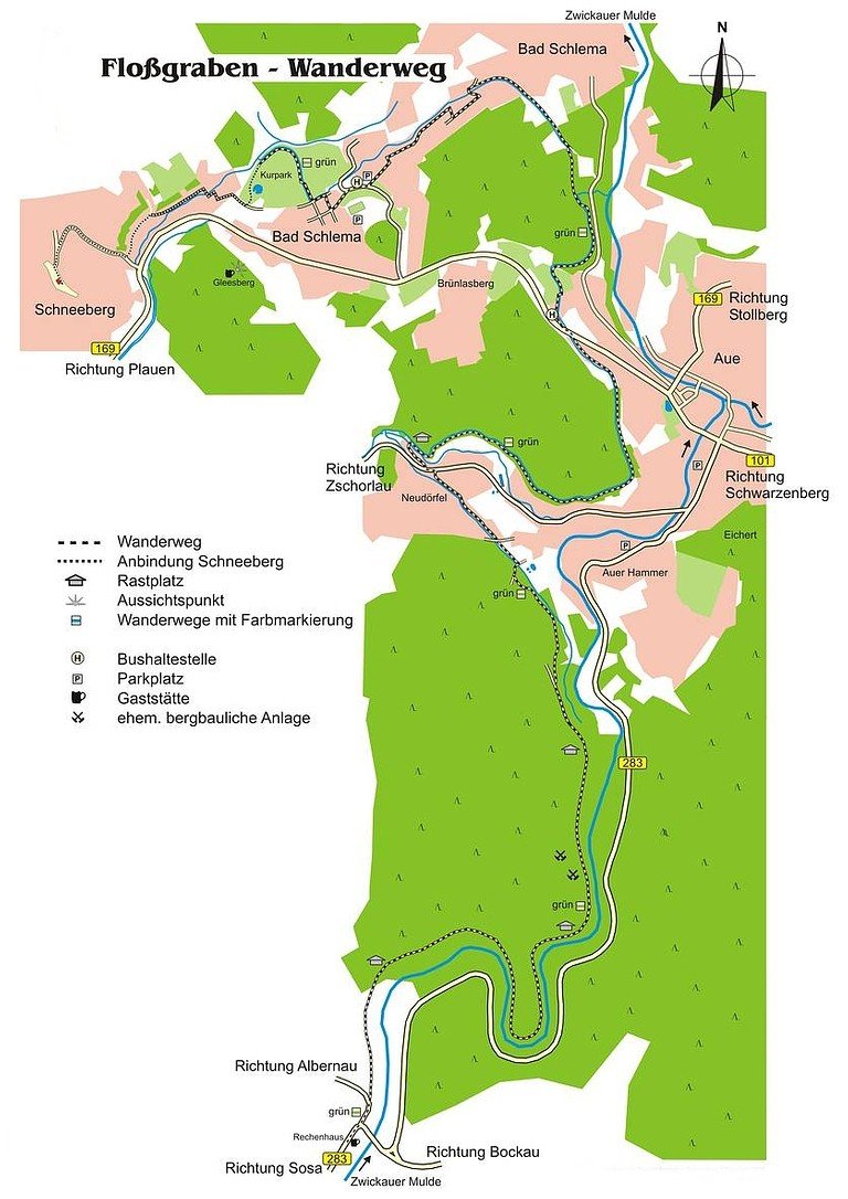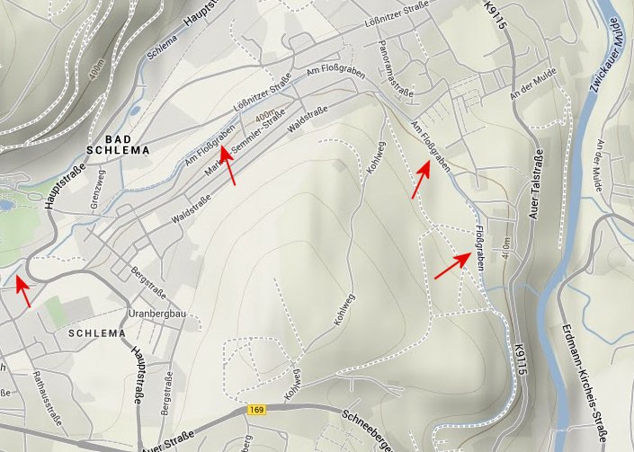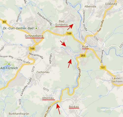 fliesst oberhalb der im Talkessel gelegenen Stadt Aue nach Schlema. Dort verfällt das Wasser