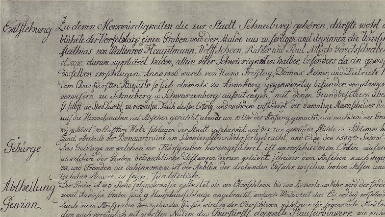 die Gemeindemühle bei Schlema und im Jahr 1558 stößt der Graben auf die Mulde,