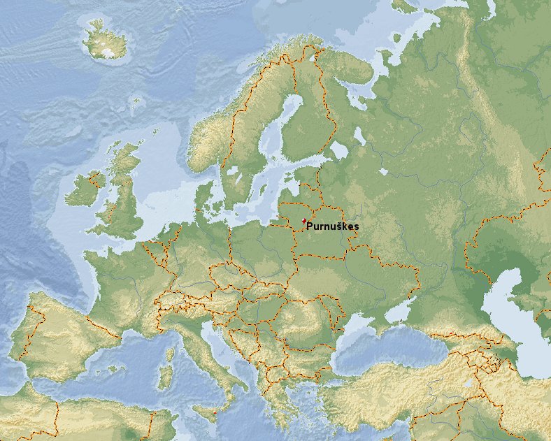 Purnuškės, ein Dorf nördlich von Vilnius, ist Mittelpunkt Europas, d.h. Flächenschwerpunkt aller dazu gehörenden Landfläche.