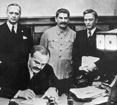 unterzeichnen in Moskau den deutsch-russischen Nichtangriffspakt.