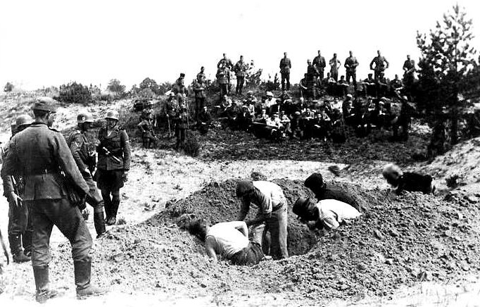 Am Tag der deutschen Invasion, noch vor Eintreffen der Deutschen vor Ort, beginnen 1941 Litauer mit Pogromen und der Ermordung von Juden. Wegen der antisowjetischen Stimmung im Land empfangen weite Teile der Bevölkerung die deutschen Truppen- und SS-Verbände freudig. Der von den Deutschen begangene Massenmord an der jüdischen Bevölkerung 1944/45 findet unter nicht unerheblicher Mithilfe der baltischen Bevölkerung statt. Aus den einheimischen Gegnern der Sowjetunion rekrutiert die Waffen-SS bemerkenswert große Anteile der Divisionen, die für zahlreiche Kriegsverbrechen verantwortlich sind. Bereits zwei Tage nach dem Einmarsch führen deutsche Einheiten im grenznahen Garsden die erste Massenerschießung von Juden durch. Litauische Nationalisten erschlagen hunderte Juden. Tag für Tag überfällt das deutsch-litauische "Rollkommando Hamann" der SS Ortschaften, erschießt bis Ende 1941 beinahe sämtliche Juden auf dem Land und in Kleinstädten.