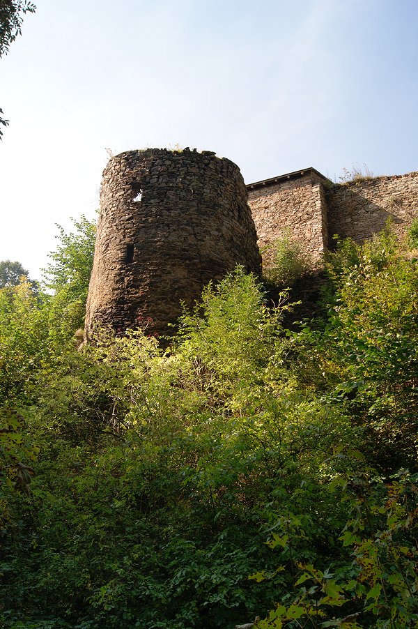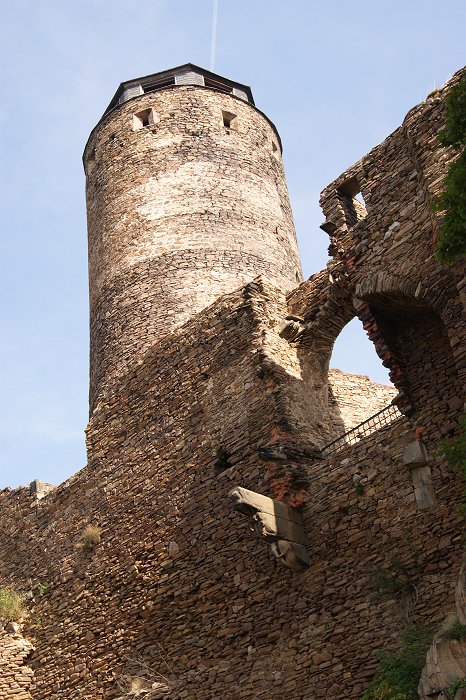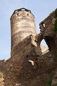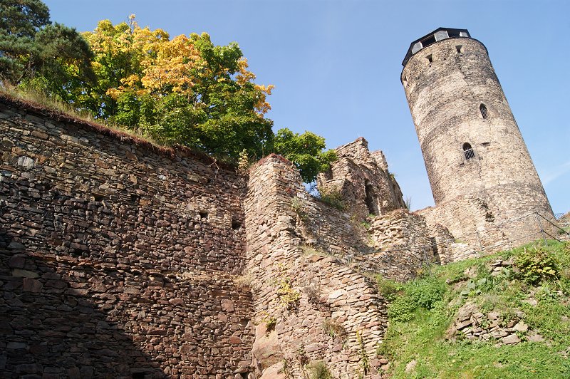 auf der höchsten Felsenkante der mächtige Bergfried. Am schönsten ist der Blick von seinen Zinnnen