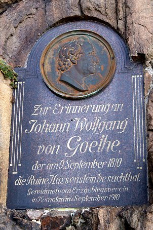 mit drei Bastionen verstärkte Ringmauer. Zwei Gedenktafeln erinnern an Goethes Besuch 1810; unter dem Burgplatz