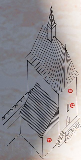Durch ein weiteres Tor gelangen wir in den innersten Hof: Palas mit Kapelle und Stiegenturm,