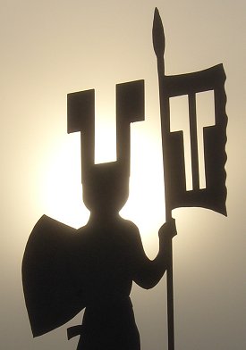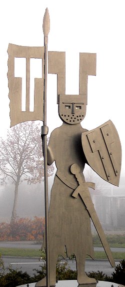 und dreht einen Vollkreis um einen gewappneten Ritter, der seine Ohren weit hochstellt ins fränkische Land,