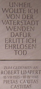 Die Justiz ahndet Meyers Verbrechen mit 10 Jahren Feiheitsstrafe, der Verurteilte verbüßt sie nur zum Teil. Die Tat des Erhängten: Robert Limpert hat die Telefonleitung zur Kommandozentrale der Nazi-Wehrmacht gekappt - eine im übrigen sinnlose Tat, die Stelle ist bereits in der Hand der US-Truppen.