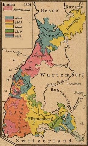 bedeutend vergrößert. Im Reichsdeputationshauptschluß erhält es eine Reihe kleiner Fürstentümer, geistlicher Gebiete und Reichsstädte,