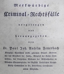 Prof. Dr. jur. et phil. Paul Johann Anselm Feuerbach, Begründer der modernen Strafrechtslehre, Freigeist und widerspruchsfreudig, leidenschaftlich und herrschsüchtig, Feuerkopf (Vesuvius nennt er sich selbst), impulsiv und reizbar, jähzornig, ist vorehelich 1775 bei Jena geboren, wird mit 25 Jahren dort Professor, lehrt in Kiel und Landshut (erster Protestant an einer bayerischen Hochschule!), tritt 1805 in das Justizdepartement ein, wo er 1806 die Folter abschafft. 1808 wird er Mitglied des Staatsrats und Ritter. Er entwirft das Strafgesetzbuch, sein Grundsatz Nullum crimen, nulla poena sine lege steht heute als Justizgrundrecht in Art. 103 Abs. 2 GG. 1817 wird er Präsident des Appellationsgerichts Ansbach. 1829 fällt er bei einer Gerichtsverhandlung vom Stuhl, ist für Stunden ohnmächtig und seitdem kränkelnd. Er wohnt am Karlsplatz.