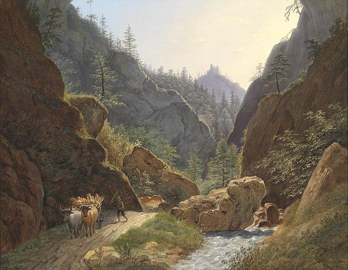 2 Tage Frost, dann Tauwetter und Regengüsse, das Flüsschen Wien rauscht vorbei, über das Wirtshaus hängt gefährlich ein Felsen, Seume liest im gemütlichen Gastzimmer Horaz und Juvenal.