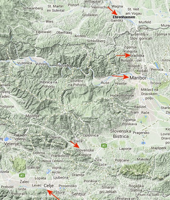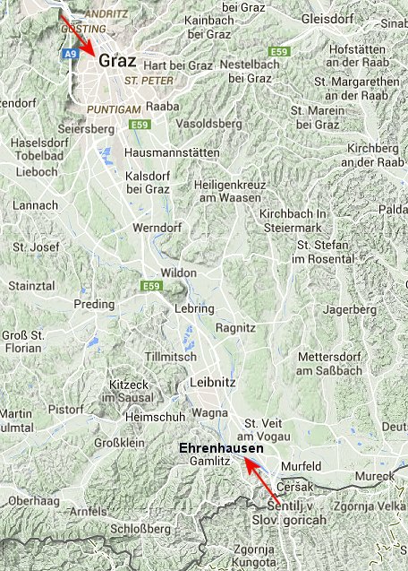 Von Ehrenhausen geht es über Marburg [Maribor] an der Drau [Drava] weiter.