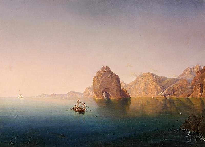 Am Fuß des des Posilippo versucht Seume hinaus bis an die Spitze zu wandeln, es gibt keine Straße, nur schroffe Felsen. Er kehrt um und eine Menge Bootsleute wollen ihn an die Spitze hinausrudern. Der Sturm heult von Sorrent und Capri gewaltig herüber, die Wogen machen furchtbare Brandung, Wasser schwappt reichlich ins Boot, und sein Begleiter hatte in einem Stündchen die Seekrankheit bis zu der letzten Wirkung.