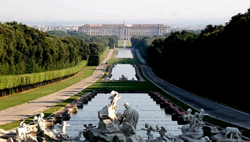 für deren absolutistische Herrschaft über die Königreiche Neapel und Sizilien, ab 1751 nach dem Vorbild von Versailles auf einem beschlagnahmten Grundstück errichtet, Bauzeit 100 Jahre.