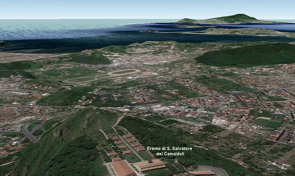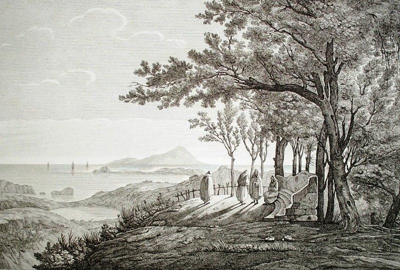 Seume steigt über den Agnano hin zum das Kloster [Eremo di S. Salvatore dei Camaldoli] hinauf und genießt vom vielleicht schönsten Punkt in ganz Italien die Aussicht: