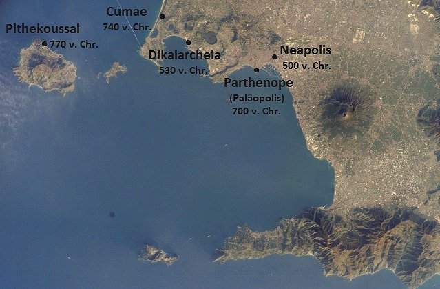 Parthenope - antike griechische Stadt im Gebiet des heutigen Neapel, etwa 700 v. Chr. von aus dem nahen Cumae kommenden griechischen Siedlern im Stadtteil San Ferdinando auf dem Hügel Pizzofalcone und der direkt vor der Küste liegenden kleinen Insel Megaride errichtet. Etwa 500 v. Chr. gründen die Griechen im Nordwesten eine zweite Stadt, namens Neapolis („Neue Stadt“) und ab da heißt Parthenope auch Paläopolis („Alte Stadt“). Der Name Parthenope geht auf die griechische Sirene Parthenope zurück, die hier an Land gespült worden sein soll.