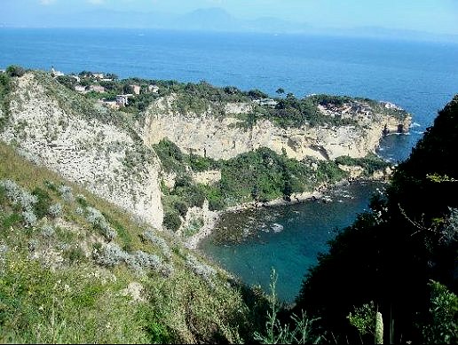 Posillipo, ein etwa 6 km langer Hügelzug im Südwesten, zu seinen Füßen das Grab Vergils ...