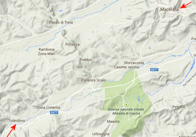 In Tolentino lässt er sich überreden und will ein Fuhrwerk, um nicht ganz allein zu sein. Es gibt aber nur einen Maulesel, den er und sein Führer besteigen. Sie kommen bis in die Nähe vom alten Kamerinum, dessen Livius im punischen Kriege erwähnt.