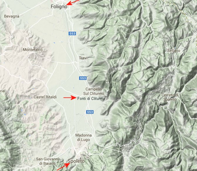 Ich Idiot glaubte, als ich in Foligno angekommen war, ich sei nun den Apennin durchwandelt: aber das ganze Tal des Klitumnus mit den Städten Foligno und Spoleto liegt in den Bergen; von Spoleto bis Terni ist der furchtbarste Teil desselben; und hier war ich wieder zu Fuße ganz allein.