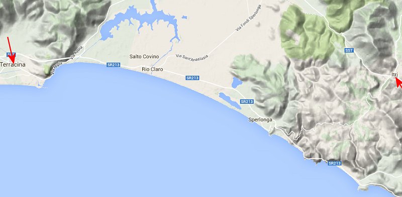 Zuerst am Strand geht es weiter über Fondi nach Itri.