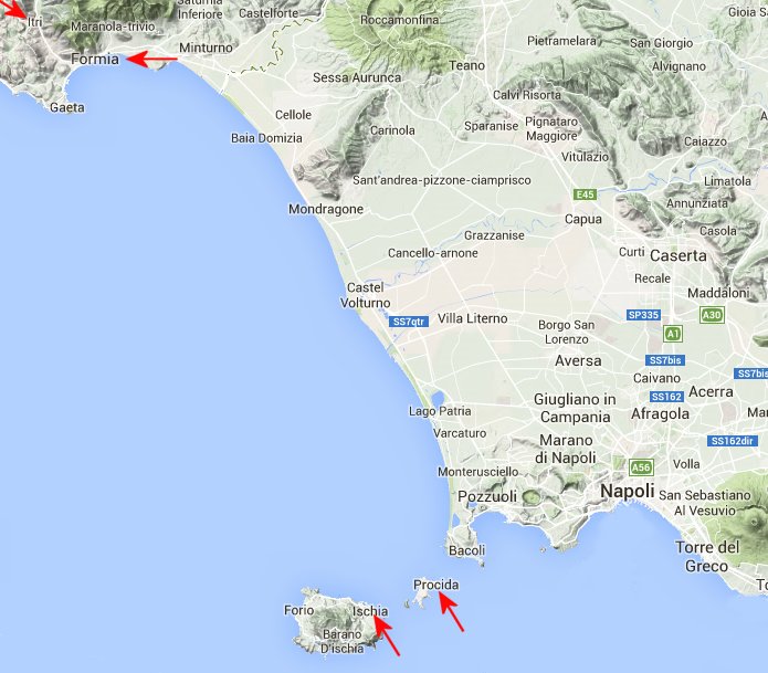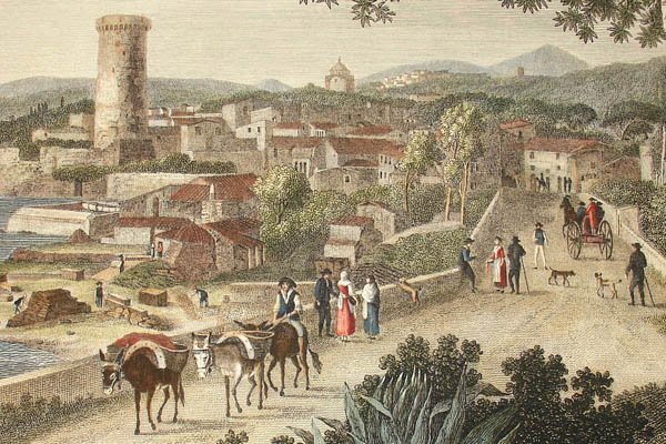 Den andern Morgen wandelt Seume zwischen den Ölbergen nach Mola di Gaeta [Formia] hinüber. Er findet ein großes, schönes, ziemlich billiges Gasthaus, wo er bei frischen Eiern und frischen Fischen, die nicht weit von hier aus dem Meere gezogen wurden, und frischen herrlichen Früchten ein vortreffliches Frühstück hält.