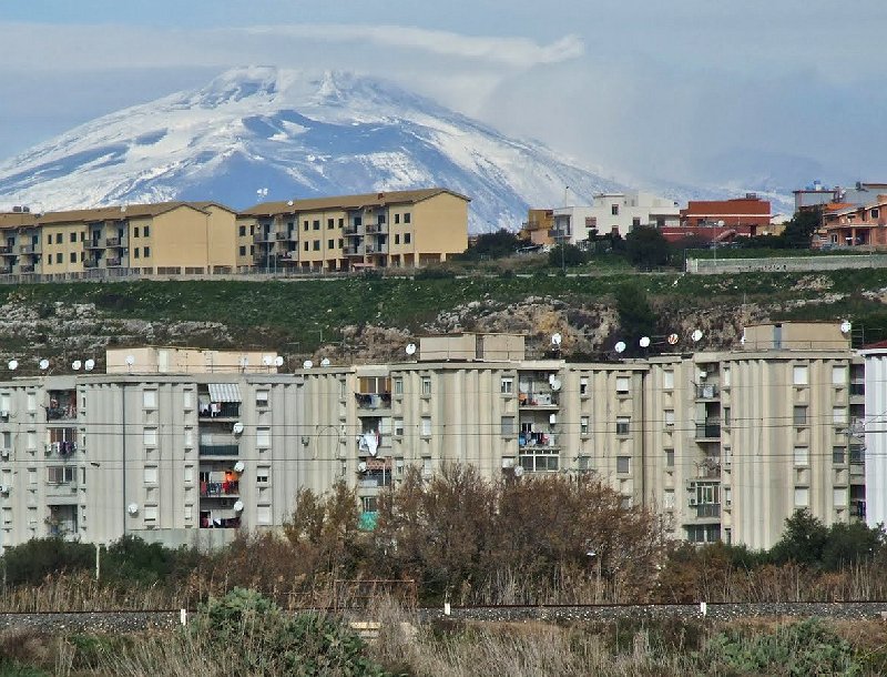 Gestern morgen, die Bahnhofsuhr von Taormina zeigte noch Sommerzeit, fuhr der Nachtzug aus Rom pünktlich 6.17 Uhr ein und 6.19 Uhr weiter in Richtung Syrakus. Die rosenfingrige Eos tastete sich noch über den Horizont und strahlte den gigantischen Ätna an. Durch Catania mit seinen barocken Stadtpalästen aus der Bourbonenzeit fuhr der Zug eilends nach Süden. Catania, wie das gesamte Mezzogiorno, ist recht schmuddelig. Neben Unrathaufen blühen Rosen und überlagern mit ihrem Duft den Müll.