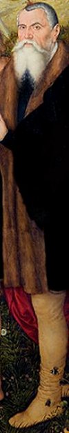 mittleren der drei Männer auf, die rechts neben dem Kreuz stehen: Lucas Cranach d. Ä., dem man lange die Urheberschaft