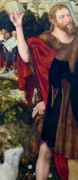 Johannes der Täufer aber erkennt selbstredend im Lamm Jesus, der der Welt Sünde trägt.