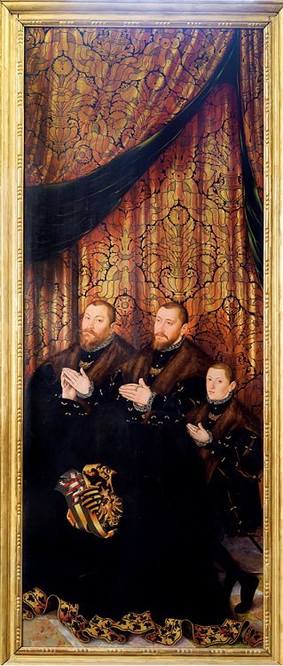 Auf dem rechten Altarflügel die drei Söhne des Herzogpaares - Johann Friedrich II., Johann Wilhelm und